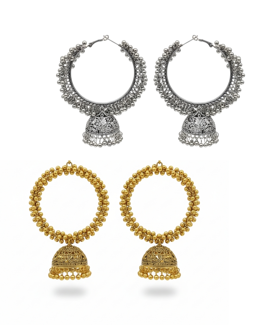 Noor Banu Circular Jhumka Bali Golden/Silver