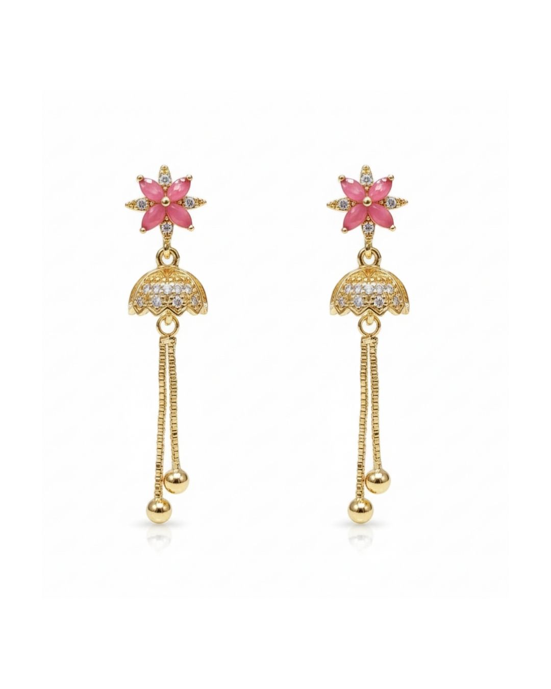 Bloom with grace in our Pink Flower China Gold Earrings. Featuring a delicate floral design highlighted with soft pink accents and a luxurious china gold finish, these earrings bring a perfect mix of elegance and charm. Ideal for festive occasions, weddings, or elevating your everyday style.