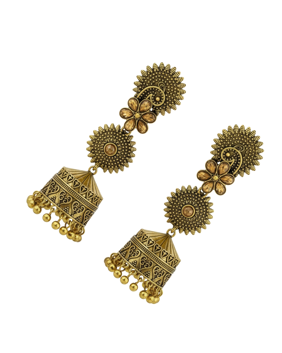 Shahi Morni Jhumki is inspired by the elegance of a peacock, featuring intricate detailing and a traditional design. Perfect for weddings, festive events, or cultural gatherings, it adds a graceful and royal touch to your style.