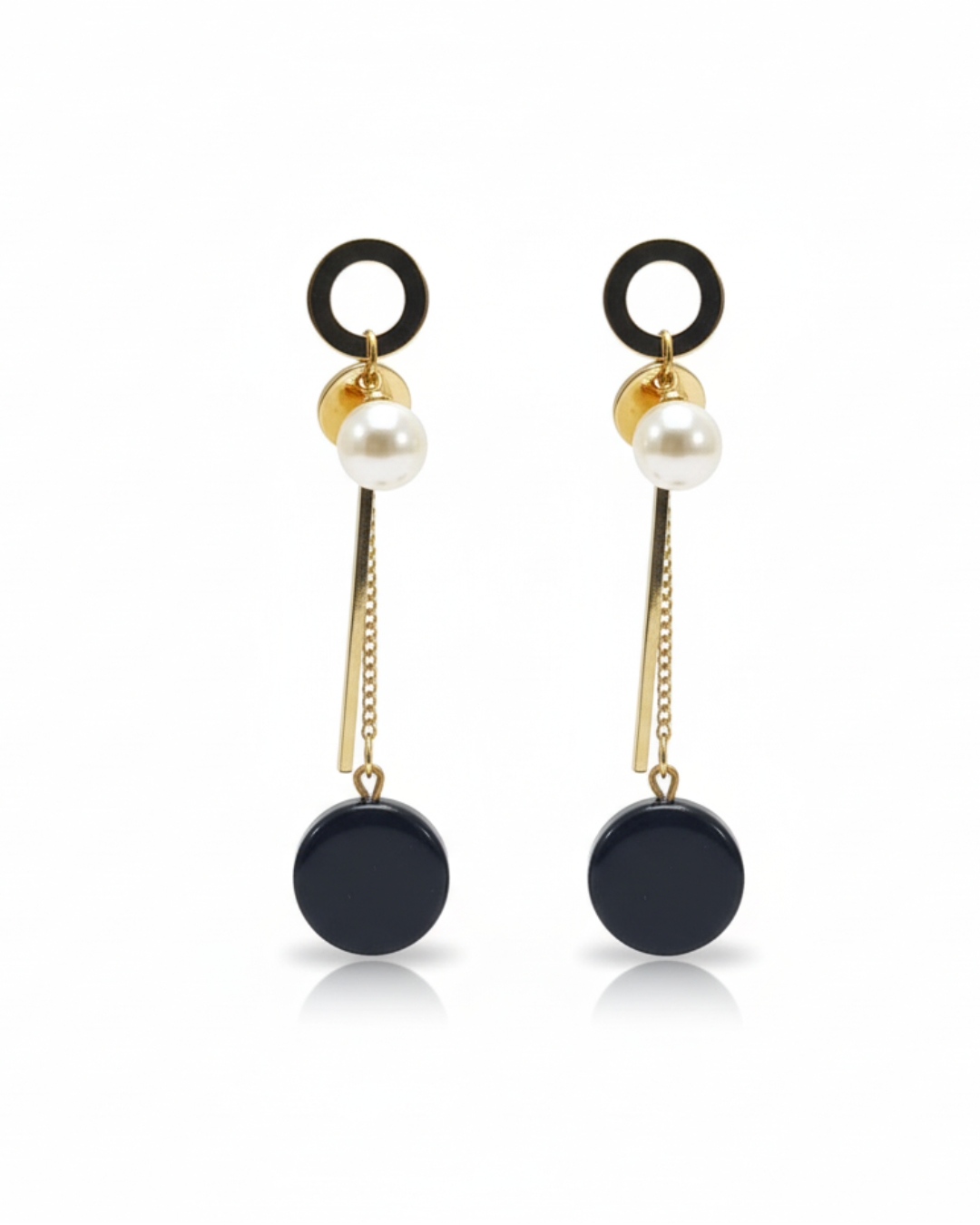 A perfect blend of elegance and charm, these Black-Gold Pearl Drop Earrings feature a sleek black-gold finish with a delicate pearl accent, ideal for both formal and Casual looks.