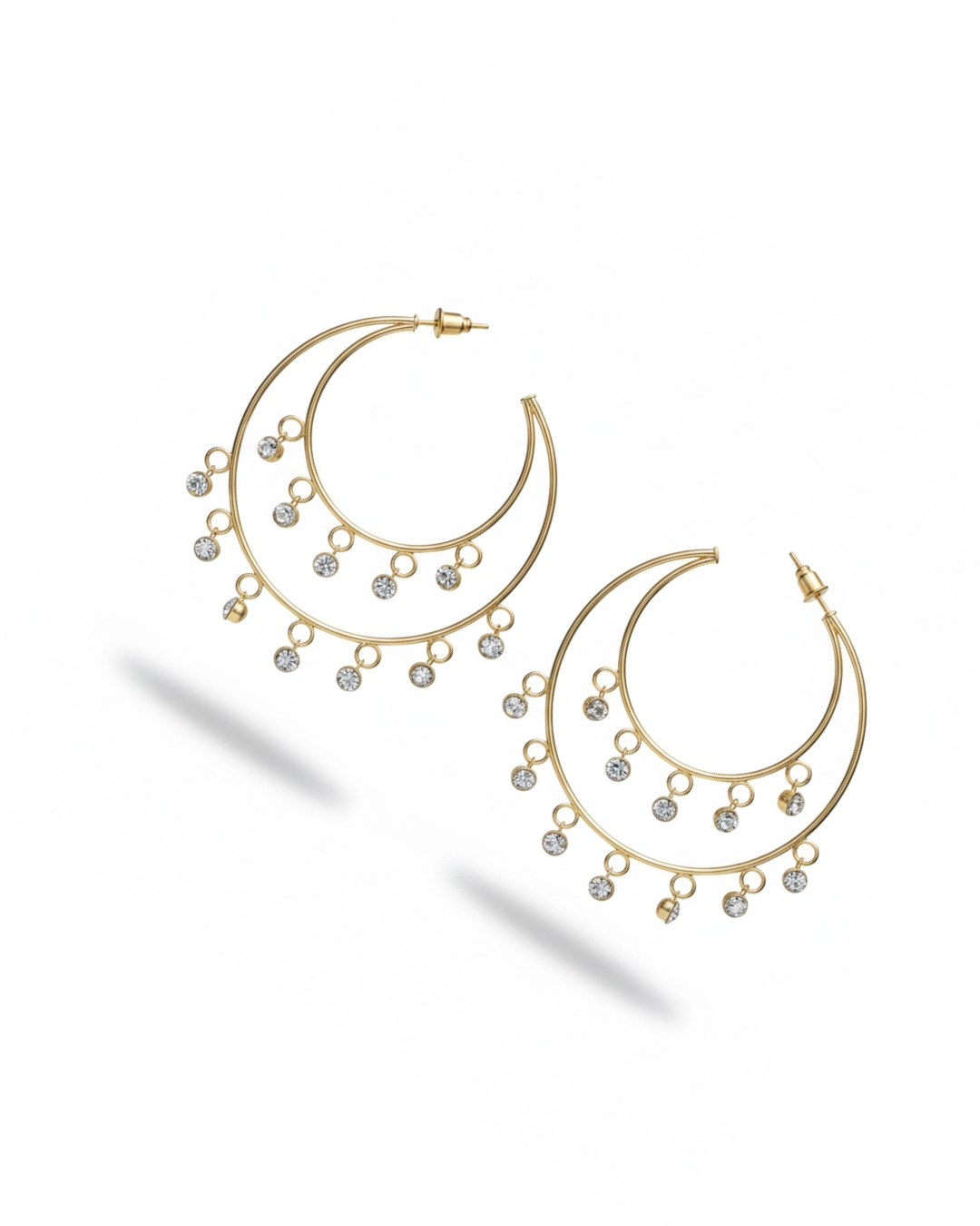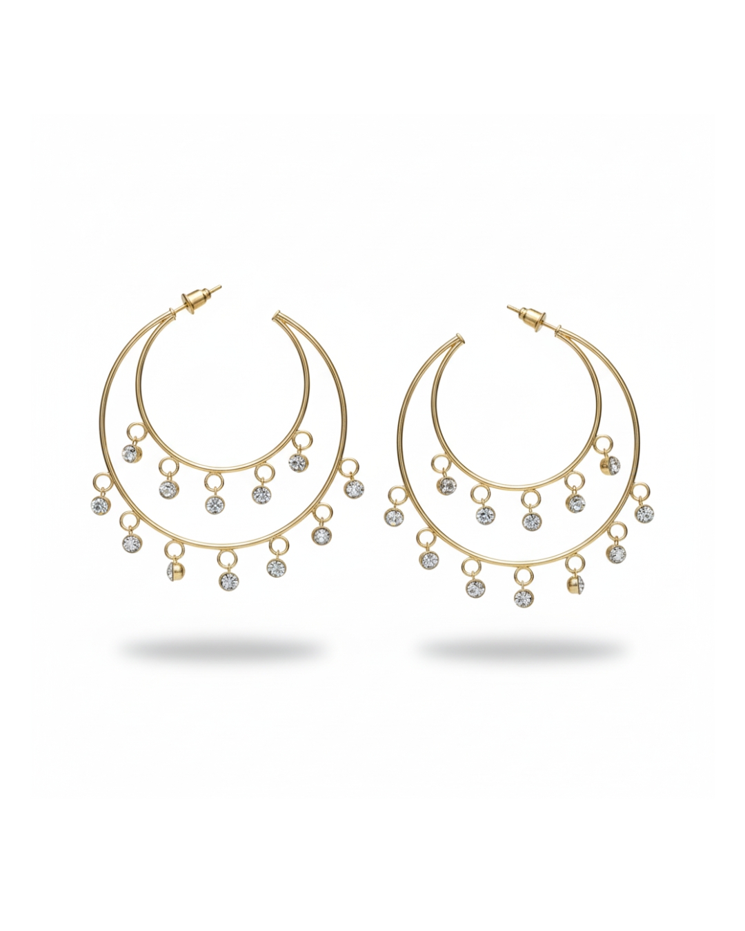 Shine with elegance in these Double Layer Silver Stone Hoops. Featuring a chic layered design with sparkling stones, they’re perfect for both everyday glam and special occasions.