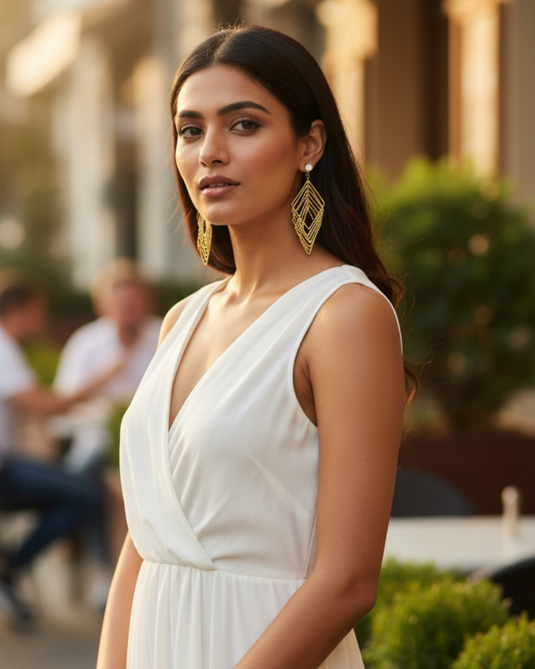 Stand out with our Multi Layer Triangular Western Earrings, designed with bold geometric layers for a chic and modern appeal. The sleek triangular drops add depth and style, making them the perfect accessory for fashion-forward looks. Lightweight yet eye-catching, they complement both casual and party wear effortlessly.