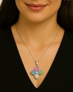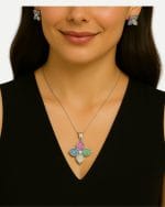 Be the first to review “Sparkling silver multi-color flower necklace set”