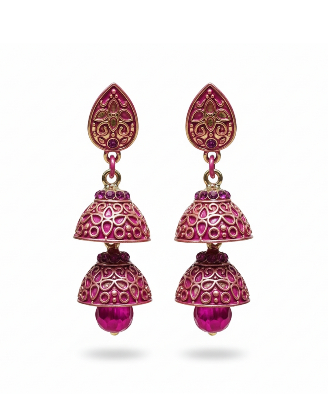 Bring a pop of color to your style with our Pink Western Jhumki. Blending the charm of traditional jhumki with a modern western twist, this piece is crafted to stand out. Lightweight yet striking, it’s perfect for festive wear, parties, or elevating everyday outfits with a playful touch.